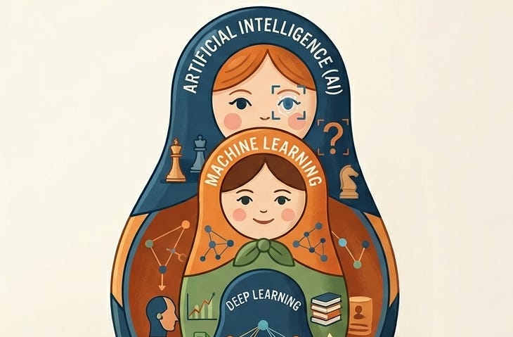 AI, ML, and deep learning are not interchangeable buzzwords. They’re a nested hierarchy of increasingly specific techniques, all built on the same core idea: learn patterns from data rather than encode rules by hand.
